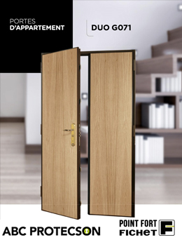 La porte blindée Fichet DUO G-07 est certifié A2P BP1, avec une serrure 5 points certifée A2P 1 étoile, et est équipée du cylindre de haute sécurité Fichet F3D à carte de reproduction personnelle codée.